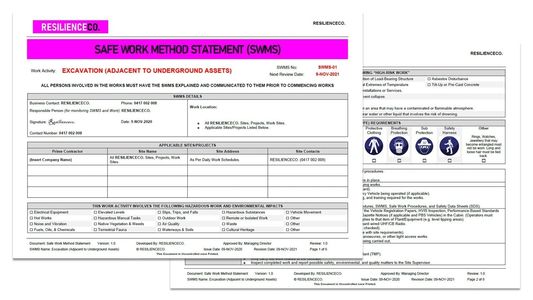 RESILIENCECO have designed a number of Safe Work Method Statement (SWMS) Packages specifically for the Trade and Industry sectors. All SWMS Packages are uniquely tailored to your individual business and its operations. For more information on a RESILIENCECO Industry SWMS Package, please speak to one of our team today....